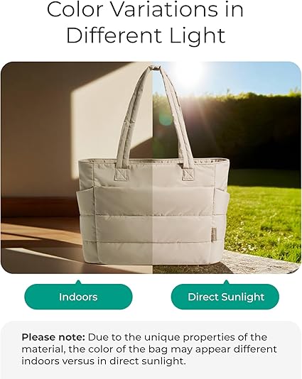 - Ultra Lightweight Material : Weighs only 0.99 pounds. Made of durable, soft and light taslan fabric. The puffer tote bag is easy to carry. Good choice of travel bag.