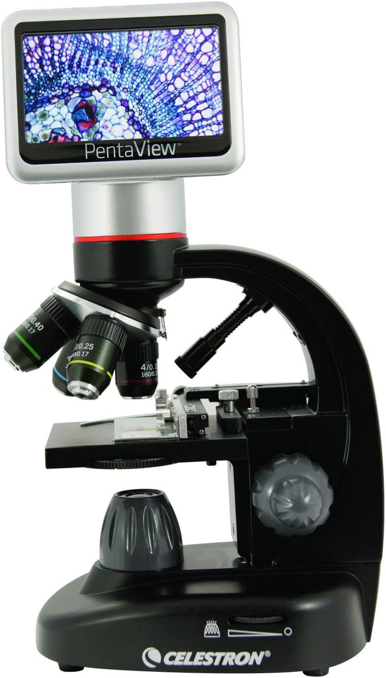 This microscope has a very serious design flaw if you view things illuminated from above. The included light that shines on the object from above is nowhere near bright enough to generate an image on the screen. You will only see a dark screen until you use a hand held flashlight or other additional light source and shine it on the object you are trying to view. How stupid is it to include a light source that isn’t bright enough to illuminate any object viewed? If you’ve ever used a quality microscope you will immediately know this is a cheaply made instrument. The focuser has play in it such that you have to overfocus just a bit, because when you take your hand off the focus wheel it goes slightly out of focus each time. You can get the hang of it after awhile…..but it’s just another sign of a cheaply made instrument. You’d be far better off buying a quality used optical microscope off an auction site than using this one. Celestron used to be a quality telescope manufacturer, but has now become just another company making low quality optical instruments while using the name of a former quality manufacturer. I sent my microscope right back for refund………..it’s sad Celestron would put out such a low quality instrument, and I won’t buy any other product from them in the future.